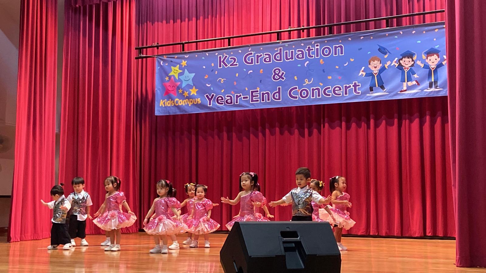 Held across our four preschools — Alora, KidsCampus Jurong West, KidsCampus West Coast, and KidsCampus Changi-Simei — the events were enjoyed by parents who had a wonderful time cheering along, and many found it especially touching to watch their K2 children graduate. Our littlest ones were especially adorable, with many doing their own sweet interpretations of the dance steps and happily waving to their mummies and daddies from the stage.